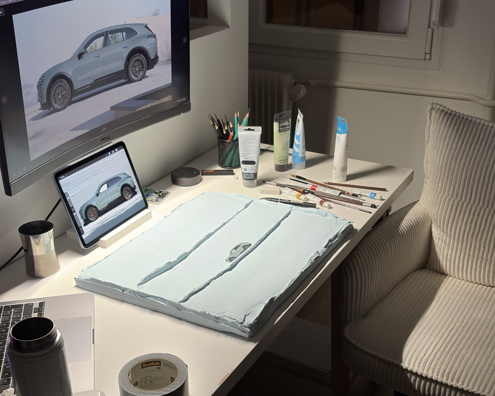 A minimalist and powerful artwork created to celebrate a true masterclass: the brand-new 100% electric Cayenne.