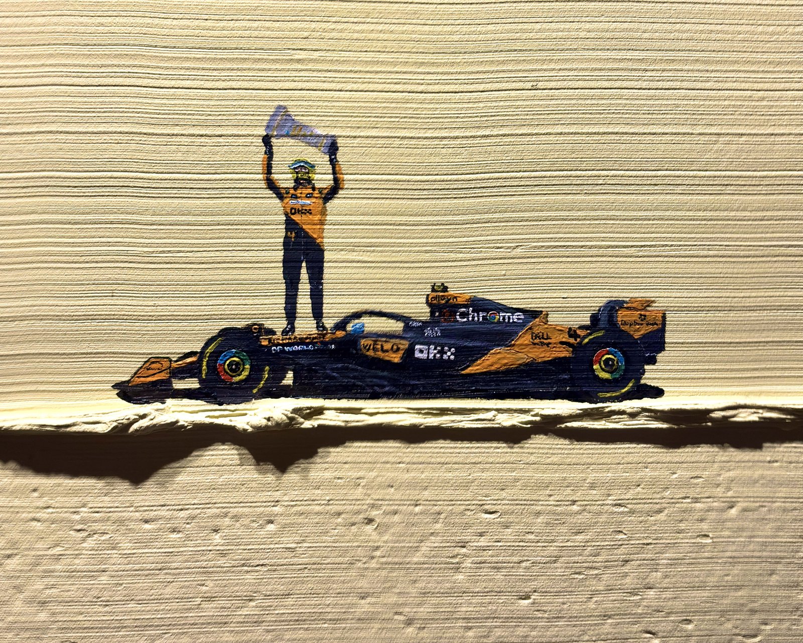 On one side, the celebration of Lando, a well-deserved world champion, brandishing his trophy on his McLaren after putting on a true show.