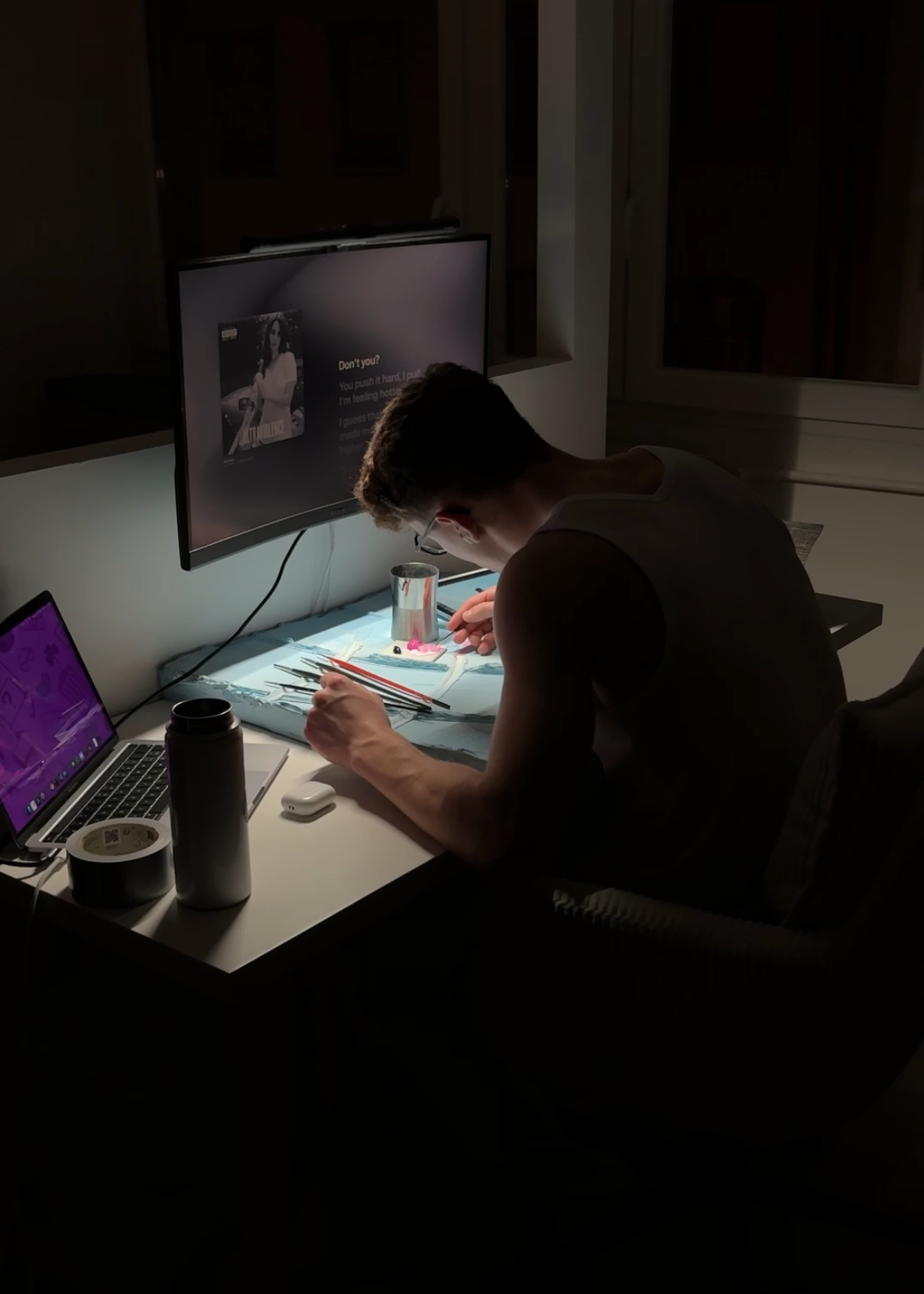 murs blancs, donc j’ai décidé de les décorer en faisant mes propres tableaux.